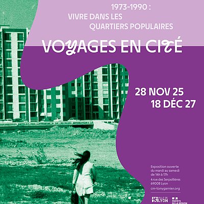 L'exposition « Voyages en cité » est une invitation au(x) voyage(s) à travers plusieurs quartiers populaires et villes de l’agglomération lyonnaise. Il s’agit à la fois d’un voyage dans le temps – puisque la période qui nous intéresse démarre en 1973, date du premier choc pétrolier, pour se terminer au début des années 1990 –, et d’un voyage dans l’espace de la métropole lyonnaise, à la rencontre de la diversité de ses quartiers populaires.