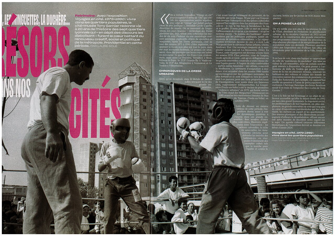 Partir à la découverte des dynamiques urbaines, humaines, sociales, culturelles des cités…, telle est l’ambition de cette exposition qui plonge dans l’histoire récente de la métropole lyonnaise. Si les crises sociales et économiques des années 1970-1990 ont profondément marqué les grands ensembles, souvent de manière négative, nous souhaitons analyser et rendre compte de cette réalité, mais aussi donner à voir les actions innovantes, les utopies créatrices qui ont émané de ces quartiers et en ont fait des lieux ressources, que ce soit au niveau des pratiques sociales ou culturelles.